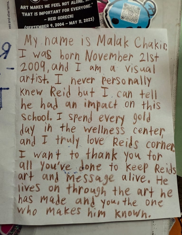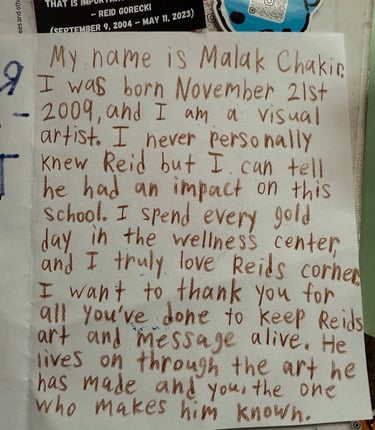 We structured our grants to support schools in the way that helps most, through the guidance of their wellness support team and the notes Reid left us. We also have been collaborating with wellness professionals and art therapists to build mental health wellness art kits to support schools without dedicated space.